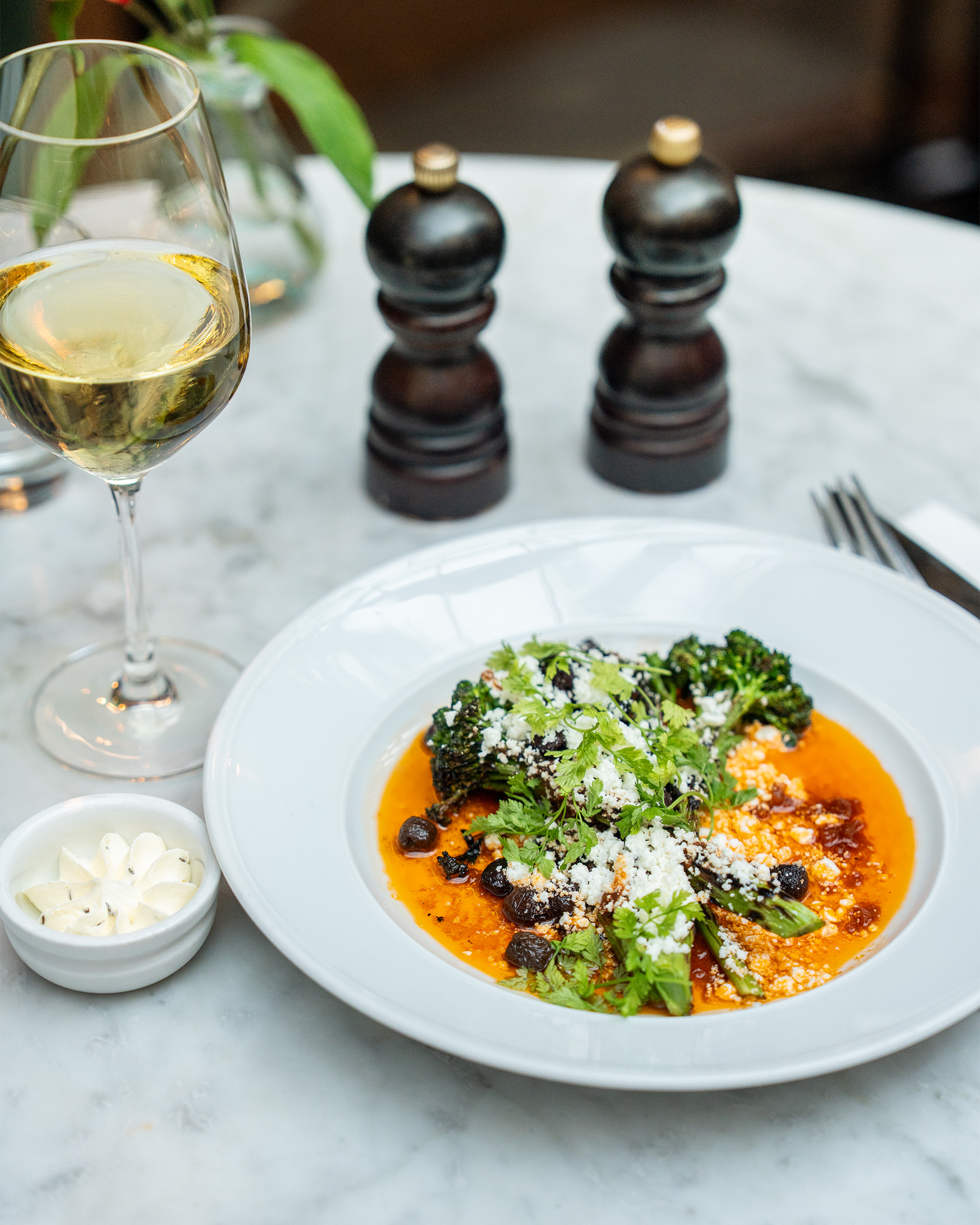 med broccolini, fetaostcréme, ajvar & klyftpotatis